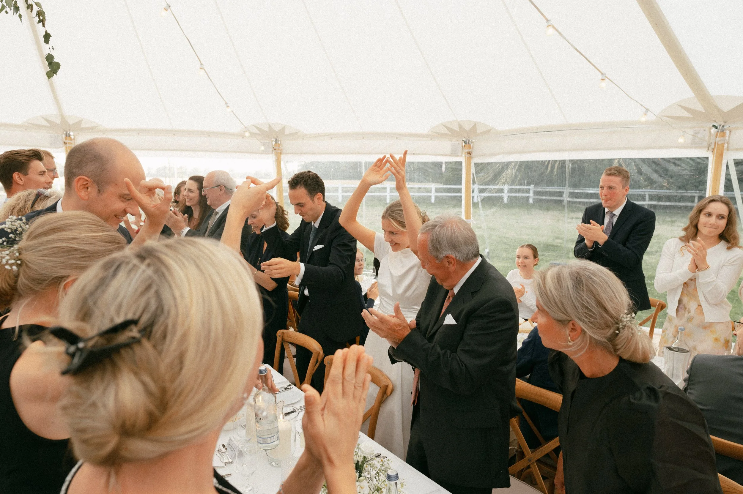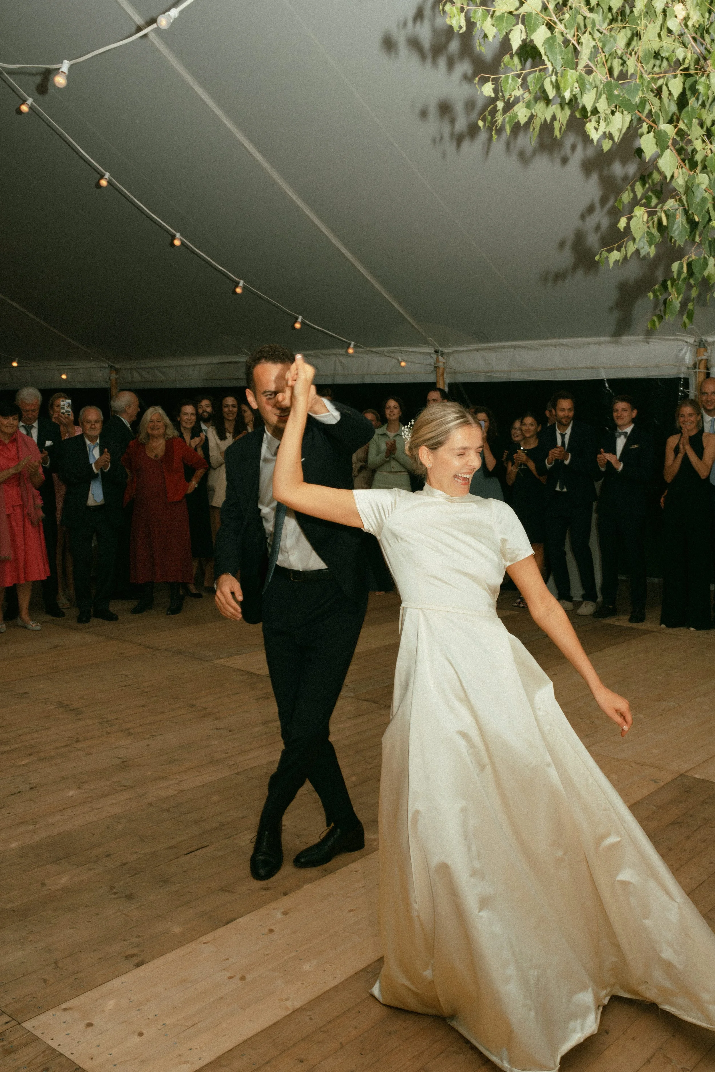 The bride, a designer herself, wore a gown of her own creation — minimalist, architectural, and full of intention. The atmosphere was elegant yet warm: timeless floral details, beautifully written speeches, a sense of togetherness that felt both intimate and grand.